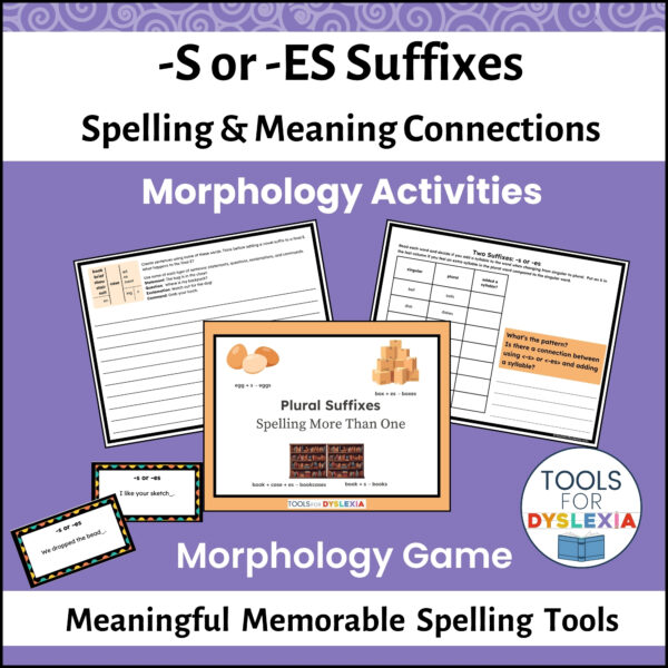 Choosing between an -S or -ES suffix can be a spelling challenge for dyslexic students. This resource focuses on morphology activities related to the -S and -ES suffixes, plural suffixes, which are also used for subject-verb agreement.
